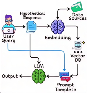 HyDE (Hypothetical Document Embeddings) is a retrieval-augmented generation framework that enhances language models by generating hypothetical answers to a query before retrieving supporting documents. Instead of directly searching for relevant passages, HyDE first prompts the model to create a plausible answer to the user's question. This hypothetical answer is then used as a query to retrieve documents that are semantically aligned with the generated response. By leveraging the model's generative capabilities to guide retrieval, HyDE can surface more contextually relevant information, especially in cases where the original query is ambiguous or under-specified. This approach is particularly effective for tasks requiring creative reasoning or when direct evidence is sparse, making it suitable for generating informed and context-aware responses.