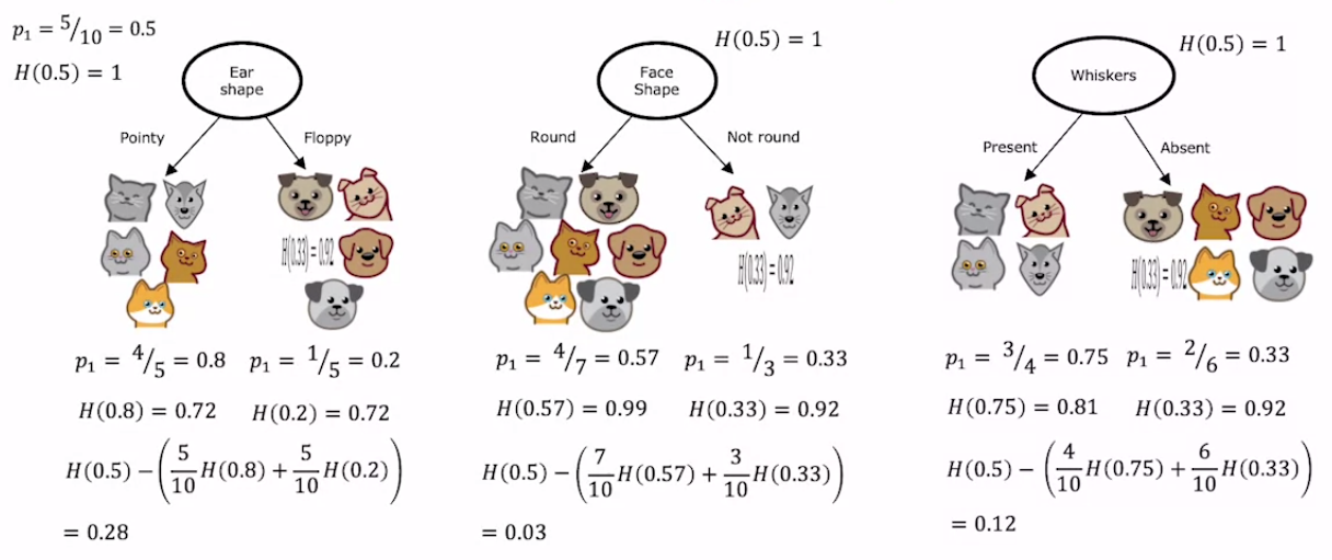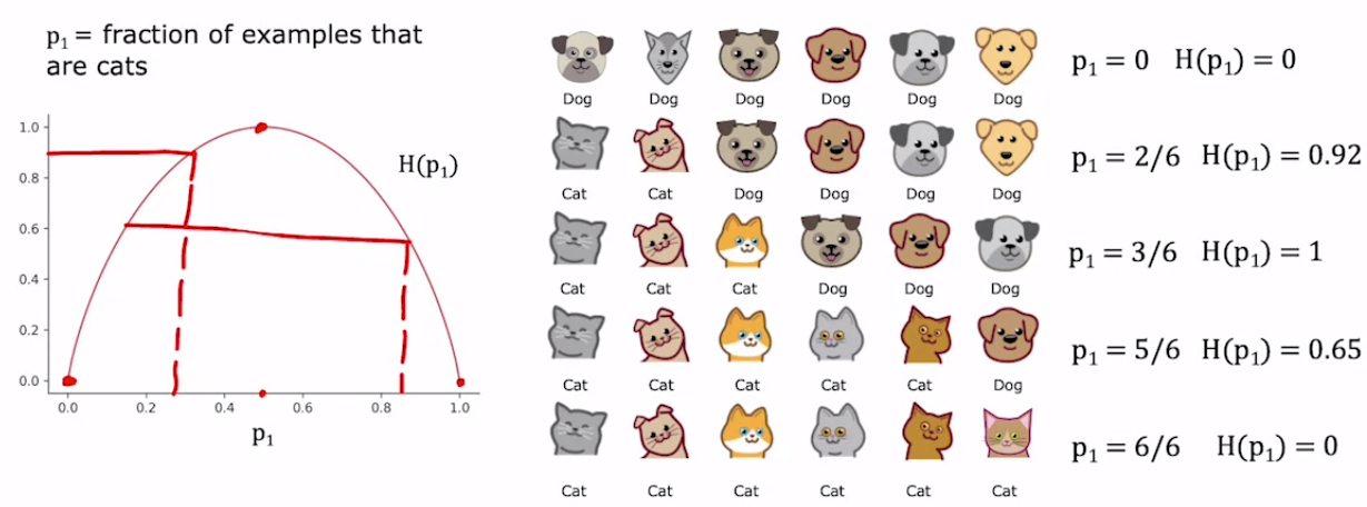 تو تصویر بالا جایی که هیچکدوم از حیوون ها گربه نیستن فرمول به ما ۰ داده و همینطور جایی که همه شون گربه هستن هم ۰ داده (فرقی نداره که همه باشن یا هیچکدوم نباشن، همین که purity رعایت بشه کافیه)
