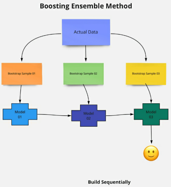 بر خلاف random forest که دیتاست های رندم میسازه، تو این الگو یک دیتا ست اولیه میسازه و بر اساسش یک decision tree میسازه و با تست کردن نتایج و پیدا کردن نقاط ضعفش این بار یک دیتاست دقیق تر رو انتخاب میکنه دوباره decision tree رو ایجاد میکنه، انقدر این کارو تکرار میکنه تا یه decision tree کامل و با کمترین اشکال ایجاد کنه.