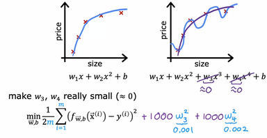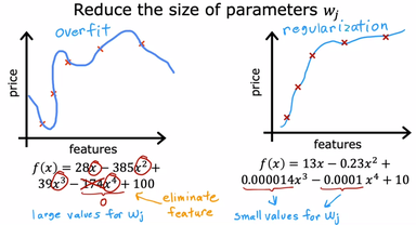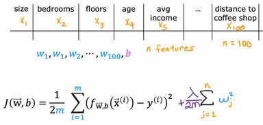 تو تصویر بالا نشون داده شده که با اعمال ضریب های (w) کوچک امتحان میکنیم که آیا حذف یک متغیر دارای توان به حل مشکل ما کمک میکند یا خیر، از آنجایی که مقادیر w و b را سیستم بطور اتوماتیک تعیین میکند و ما در آنها نقشی نداریم لذا با استفاده از روش زیر، سیستم را مجبور به انتخاب اعداد کوچک برای ضریب های (w) دلخواه خود میکنیم: