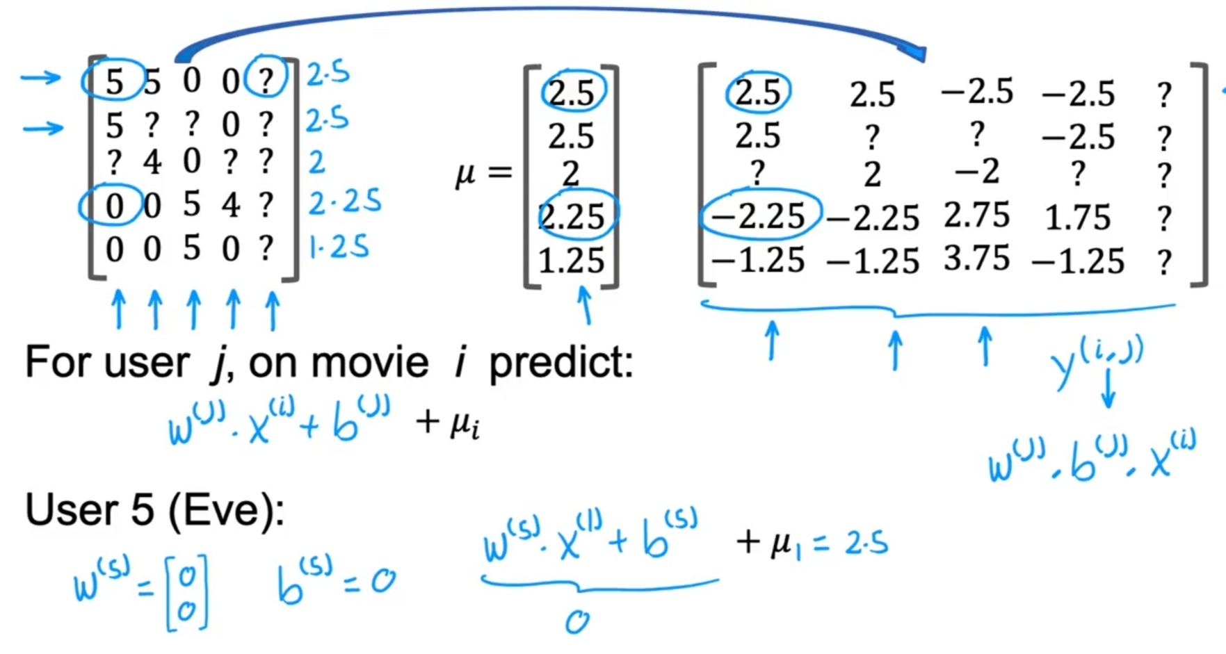 تو دو تصویر بالا نمونه از این تکنیک در الگوریتم Collaborative Filtering میبینیم با اضافه کردن \(\mu\) به فرمول محاسبه باعث میشه کسایی که به یه فیلم امتیاز ندادن هم یه عدد اولیه براشون در نظر گرفته بشه.