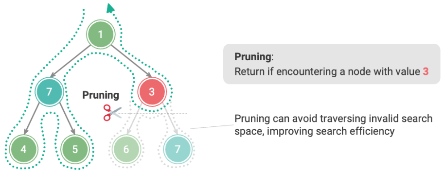 - Prune: Avoid searching paths that definitely will not produce a solution, thus saving time and space.
