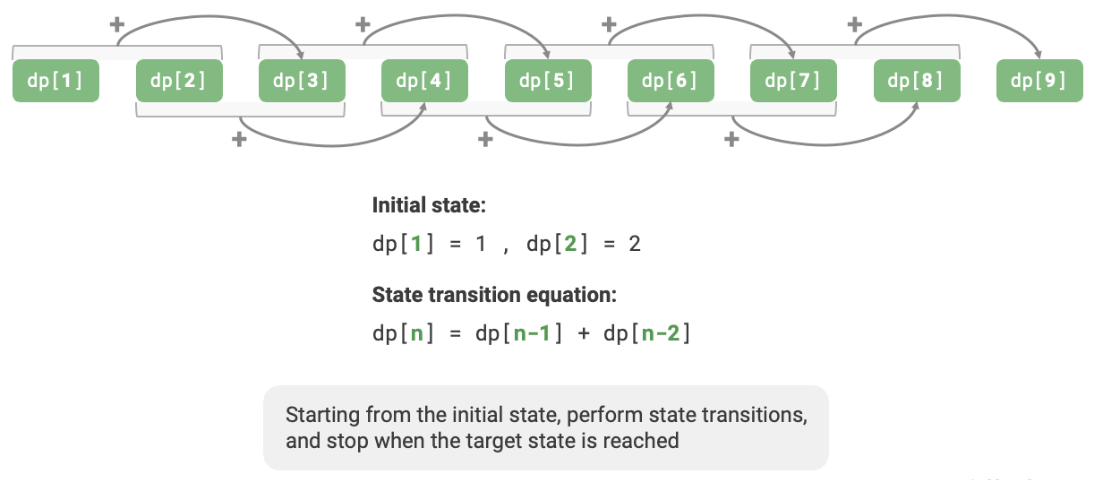 dp[i] = dp[i - 1] + dp[i - 2]