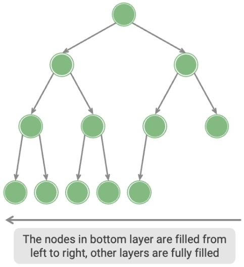 Given an index \(i\), the index of its left child is \(2i + 1\), the index of its right child is \(2i + 2\), and the index of its parent is \(\lfloor (i - 1) / 2 \rfloor\) (floor division). When the index is out of bounds, it signifies a null node or the node does not exist.