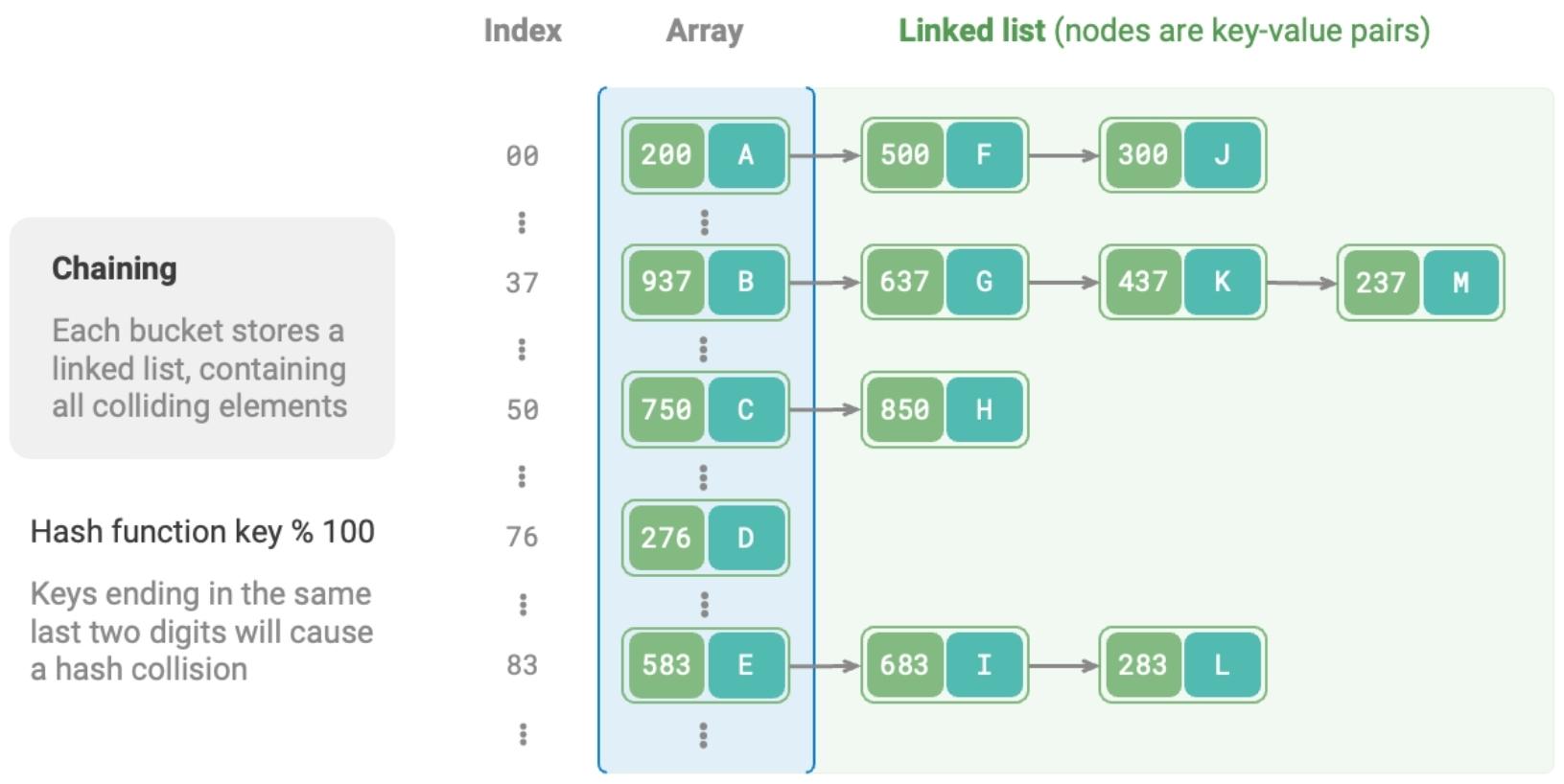In the original hash table, each bucket can store only one key-value pair. Separate chaining converts a single element into a linked list, treating key-value pairs as list nodes, storing all colliding key-value pairs in the same linked list.