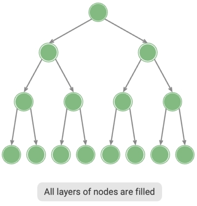As shown, in a perfect binary tree, all levels are completely filled with nodes.